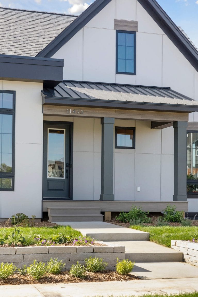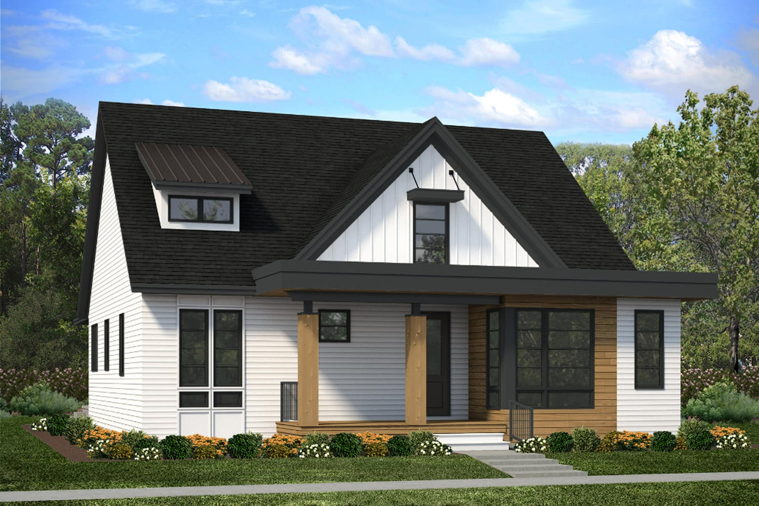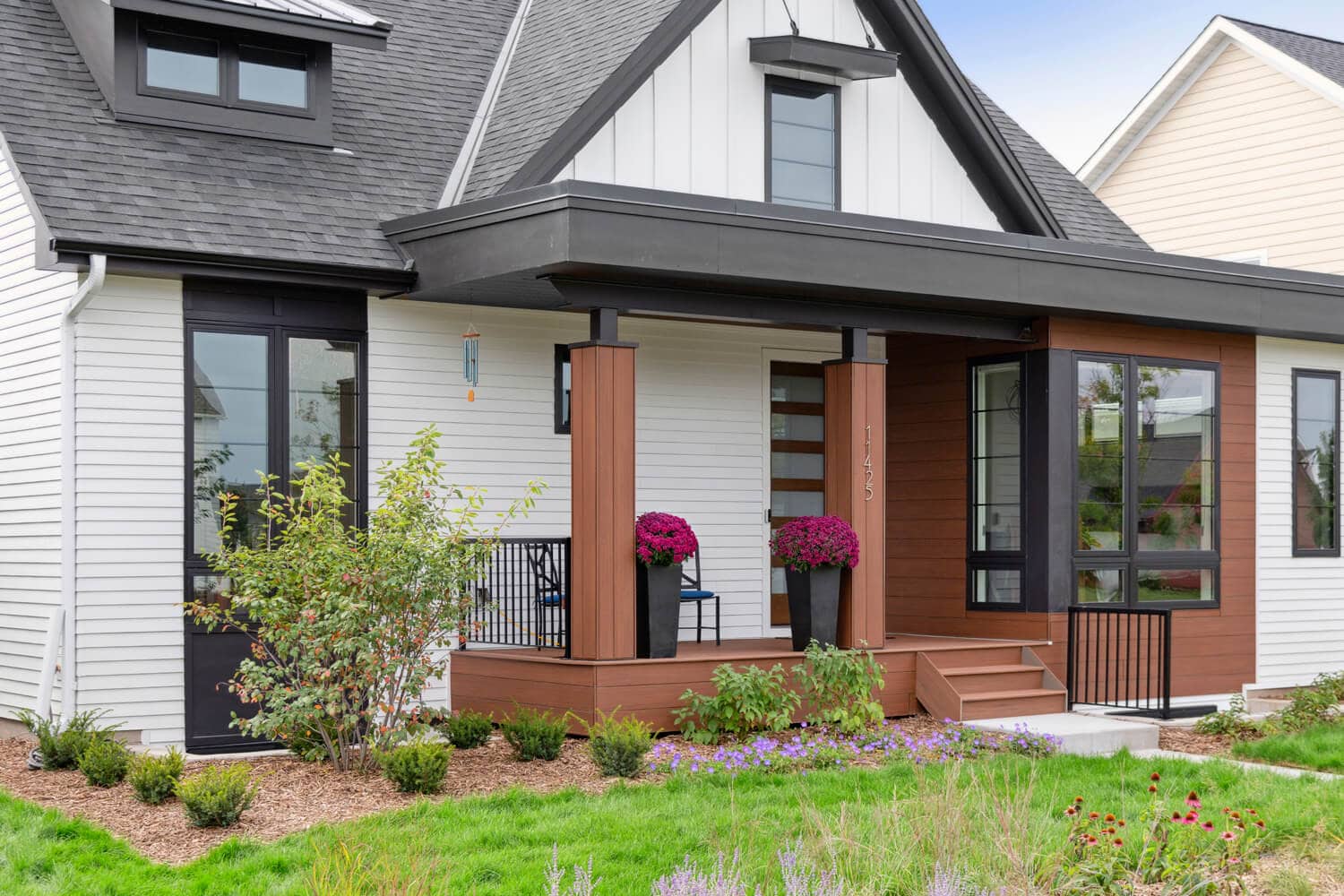- James Hardie® pre-finished siding with 4-sided architecture detail including wrapped windows and trim boards