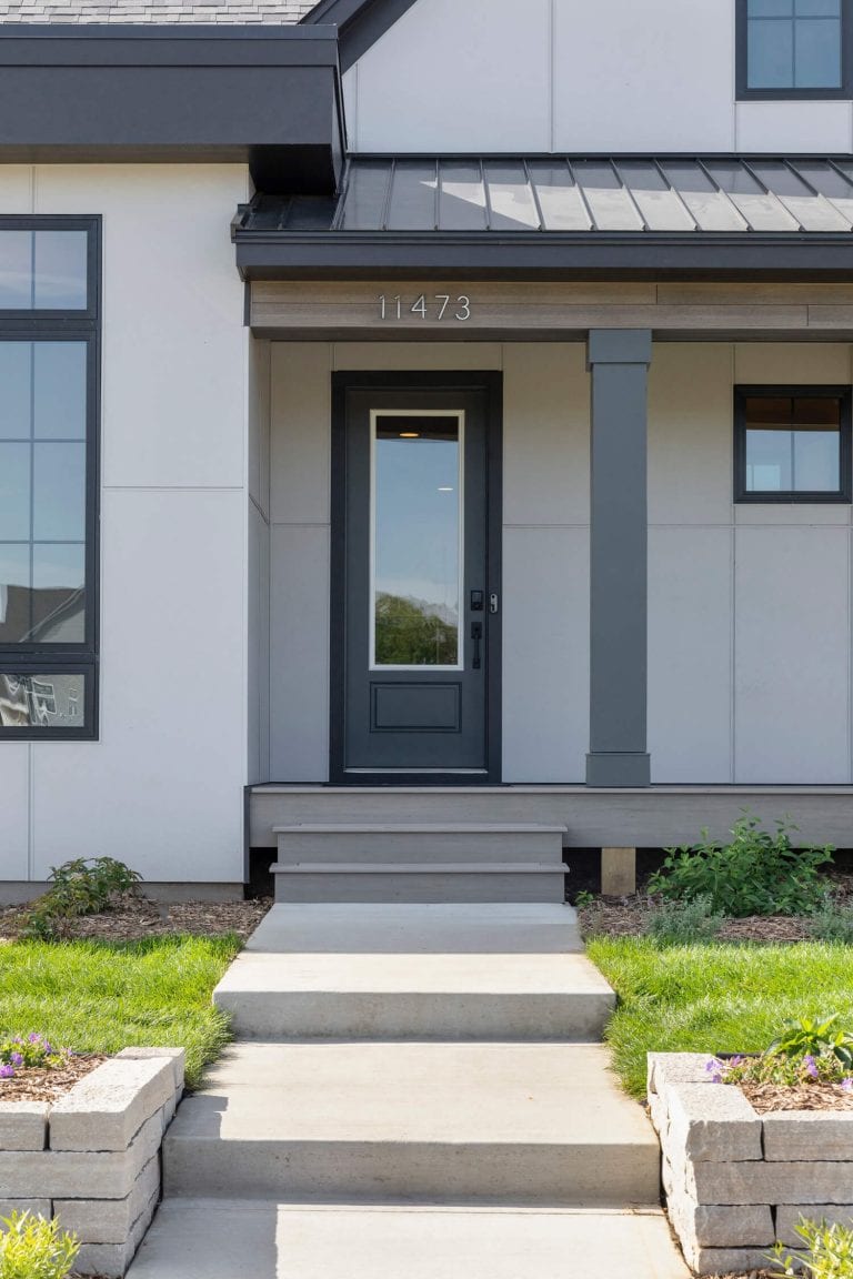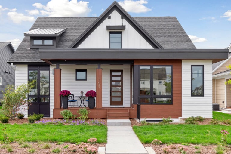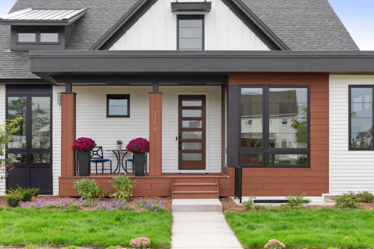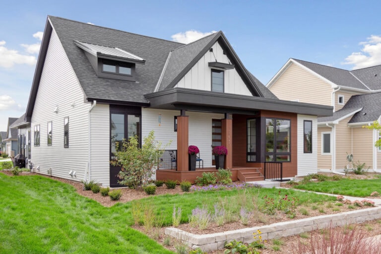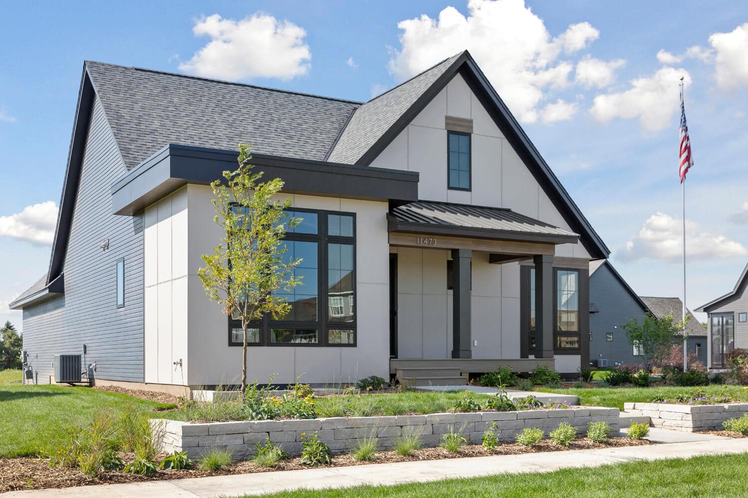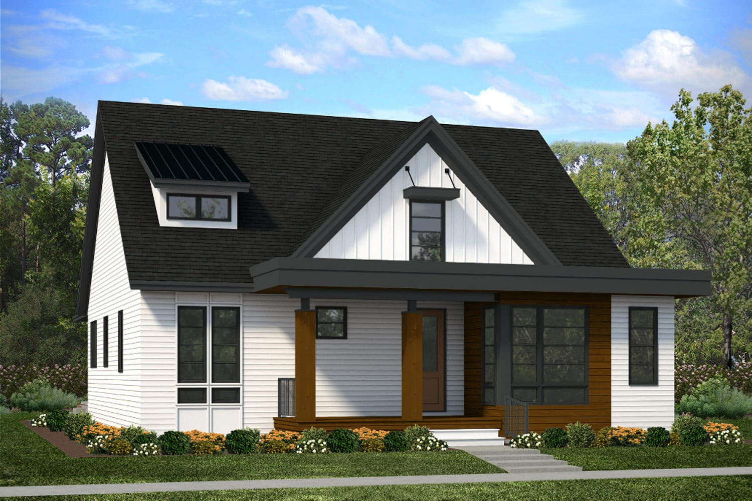 - James Hardie® pre-finished siding with 4-sided architecture detail including wrapped windows and trim boards