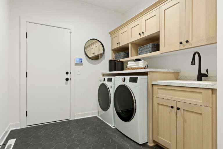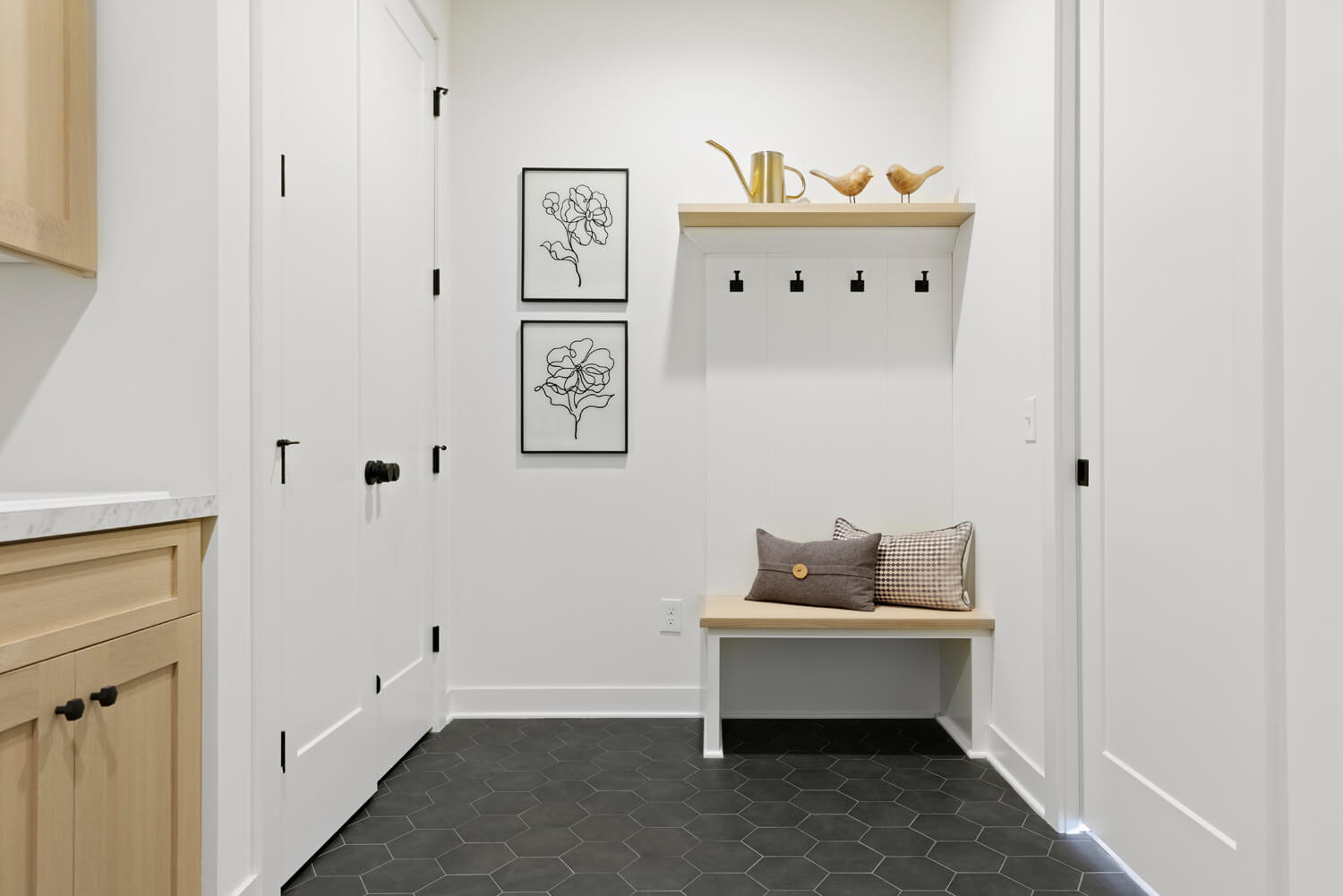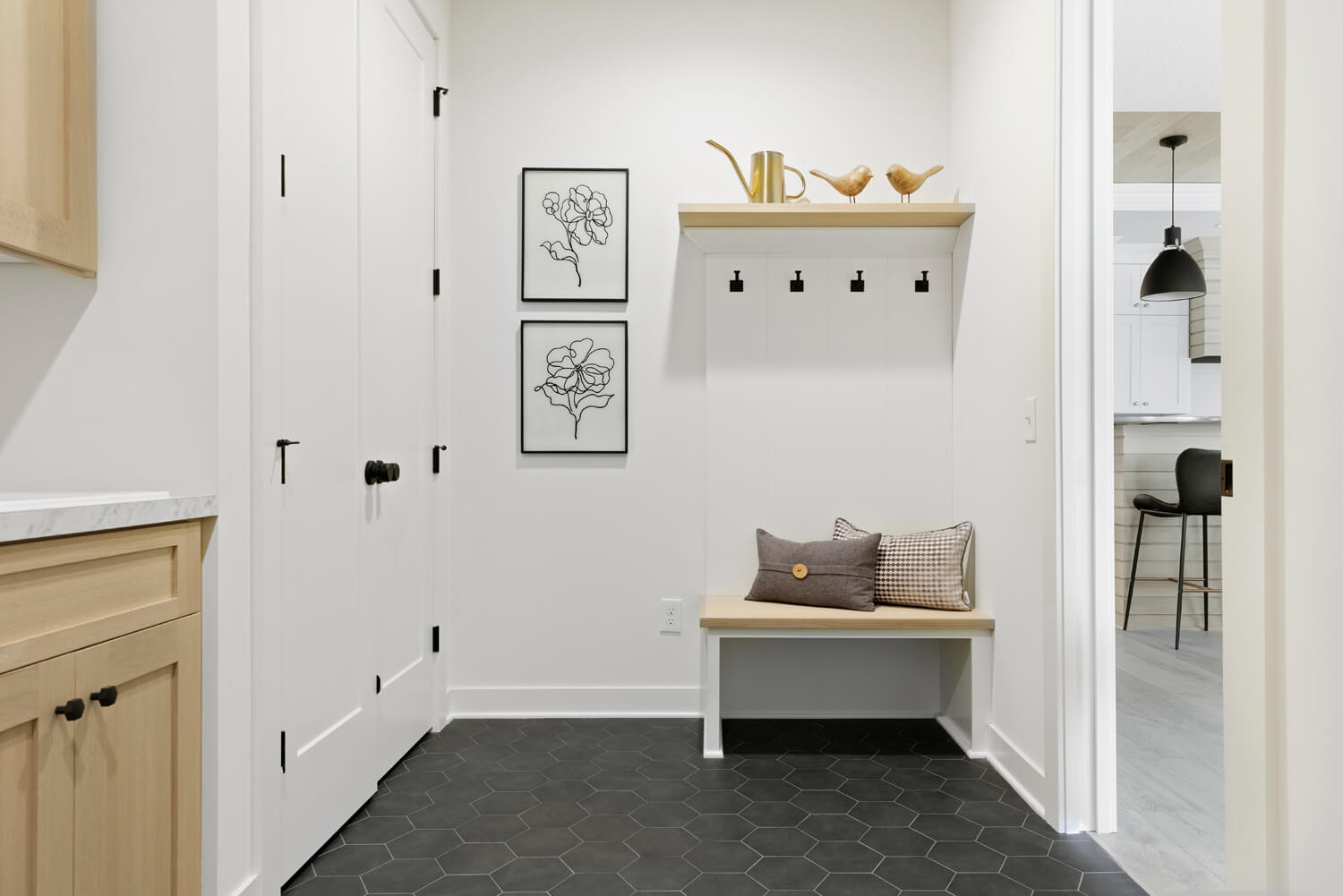 - 3-Car Tandem garage leads to convenient main level laundry and mudroom with closet and optional bench