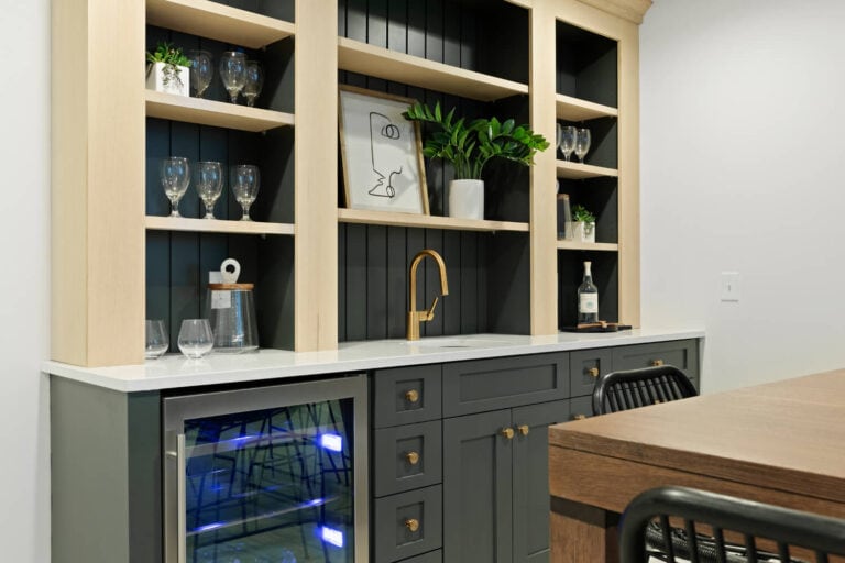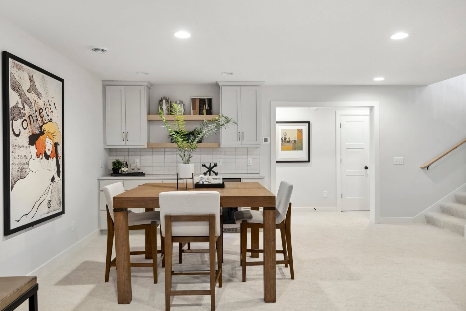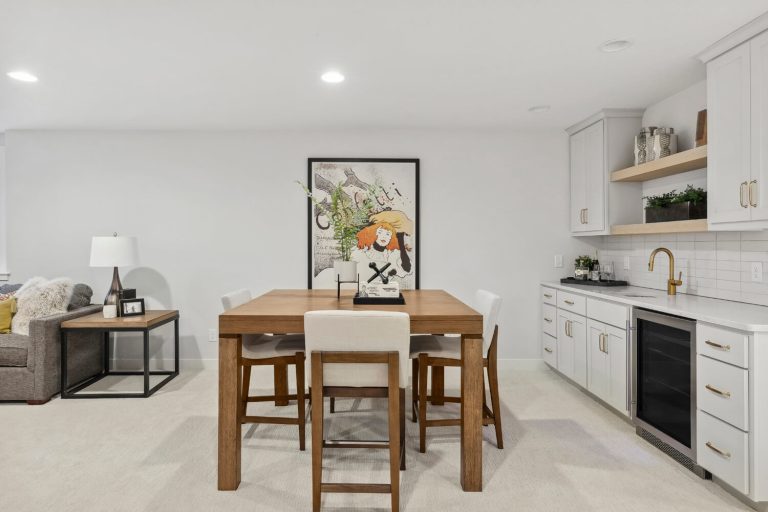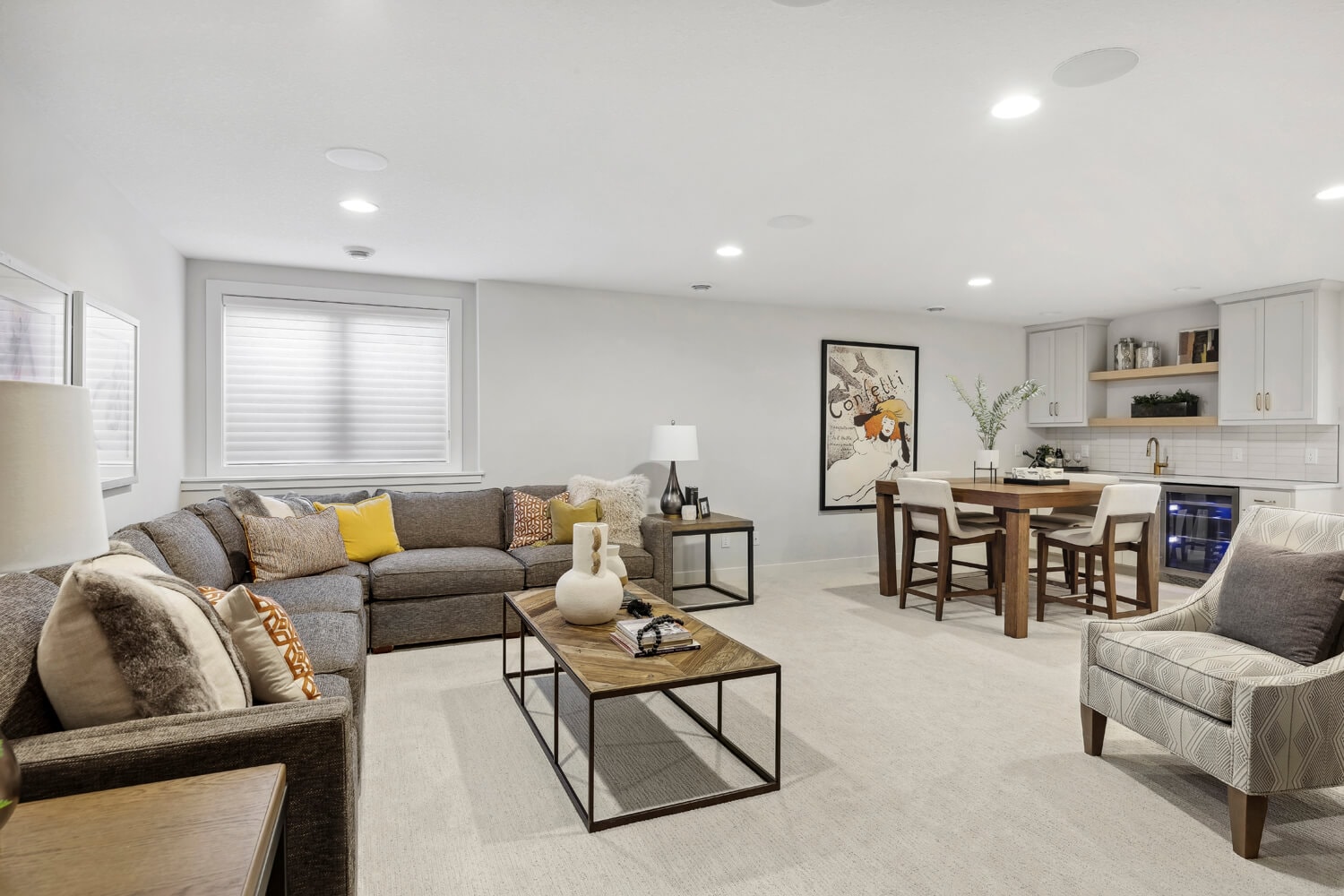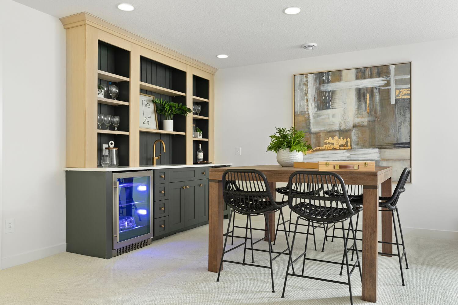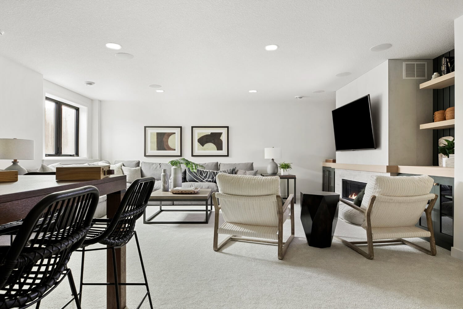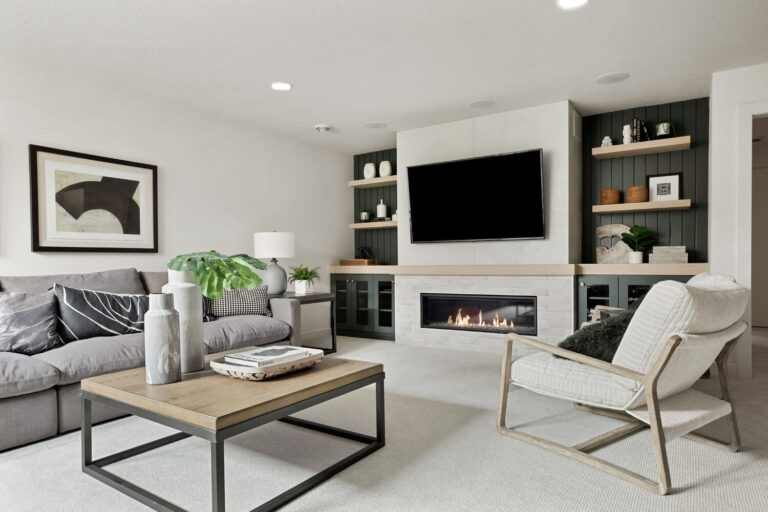 - Optional wet bar and fireplace with built-ins available in the lower level