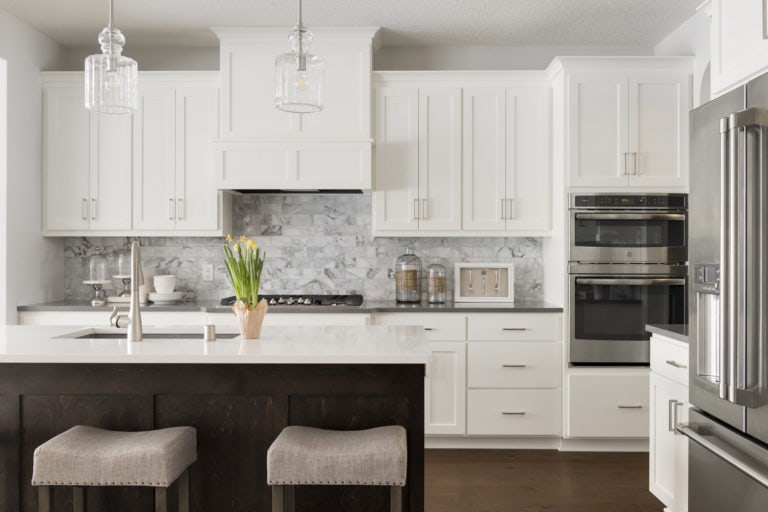- Kitchen features beautiful custom cabinetry, center island and large walk-in pantry