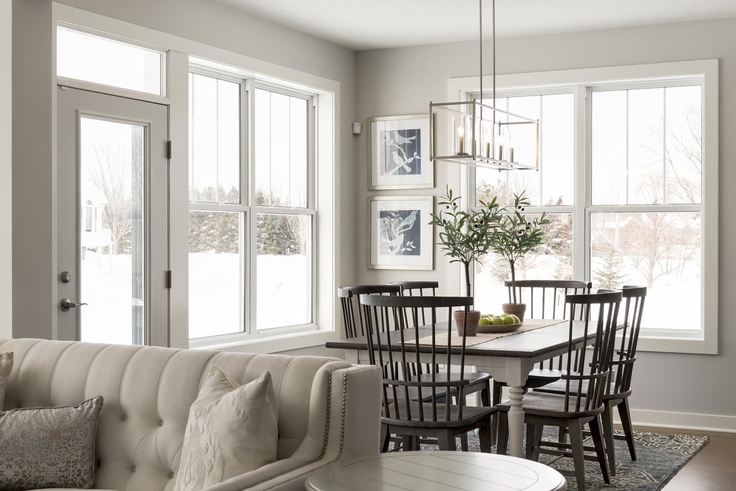 - Central open kitchen features panoramic views of main level and adjacent dining area with optional transom window