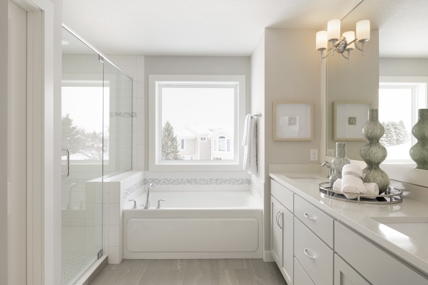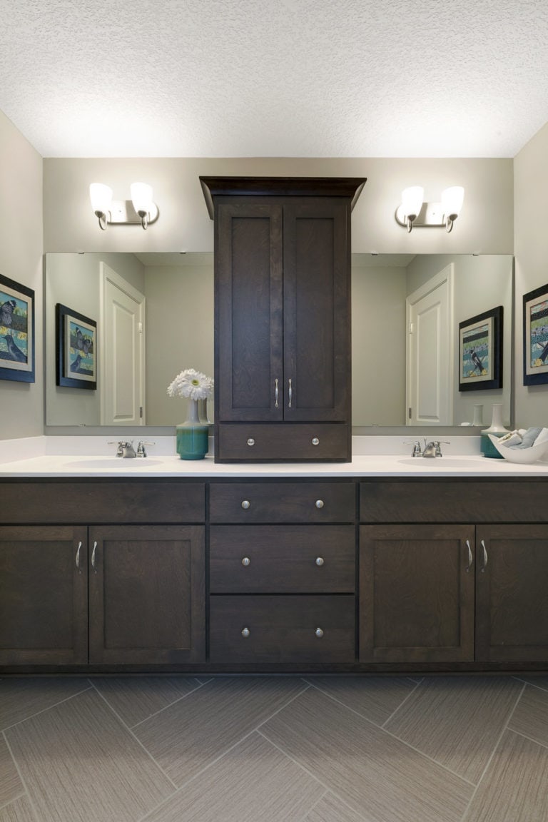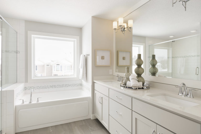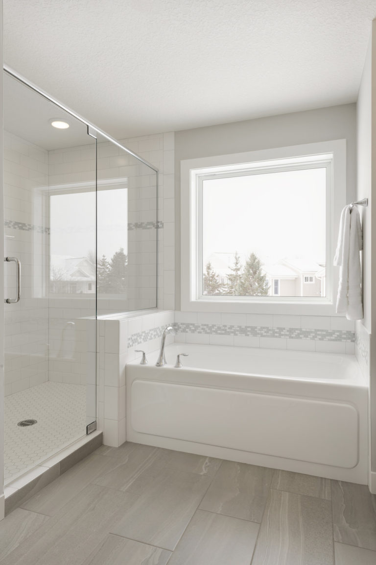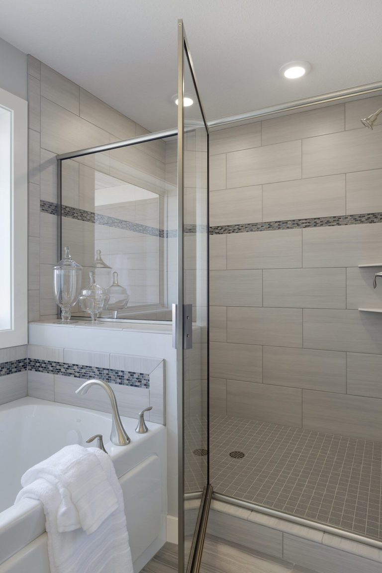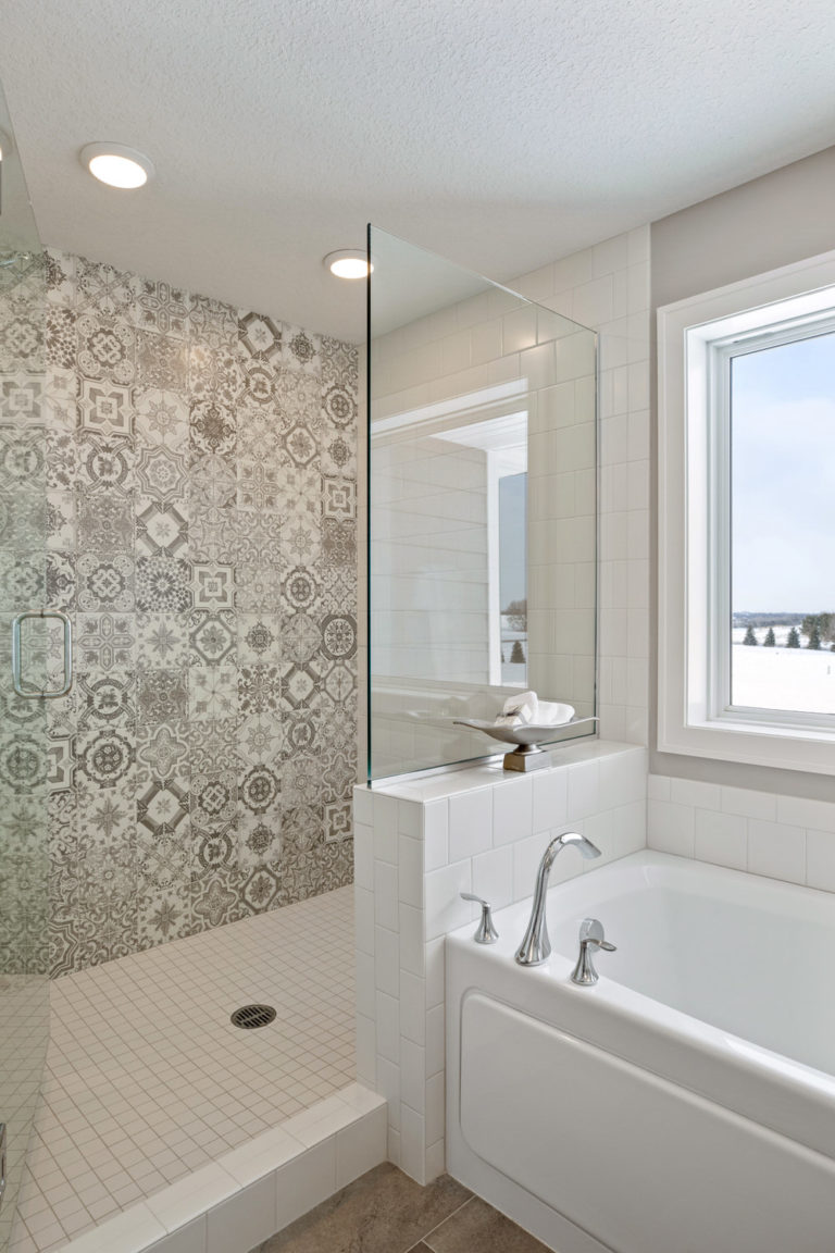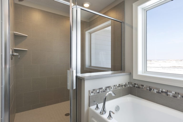 - Owner’s bath features soaking tub, dual vanity, separate shower, linen, private water closet, and optional ceramic tile shower