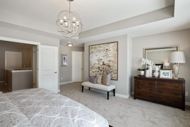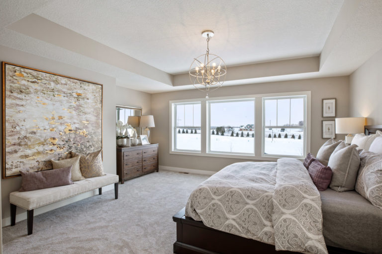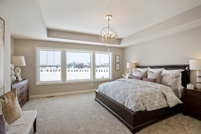 - Tranquil owner’s retreat features option for box vault ceiling and includes dressing space and large walk-in closet
