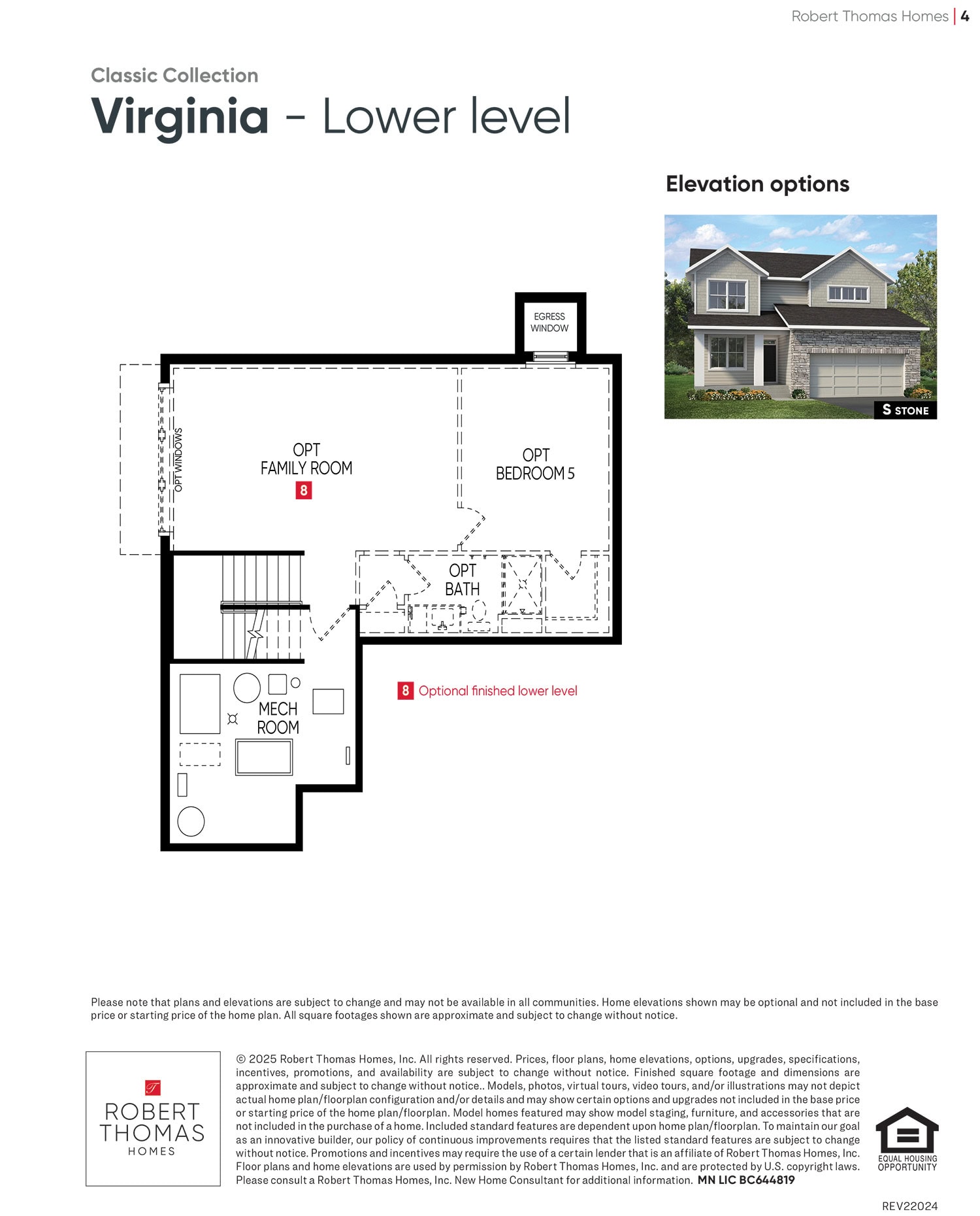 Optional lower level with family room, bedroom #5 and bath (adds 662 sq.ft.)