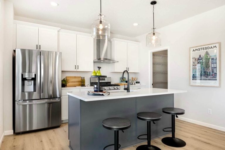 - Light-filled open-concept main floor plan with bedroom and full bathroom, mudroom, and walk-in pantry