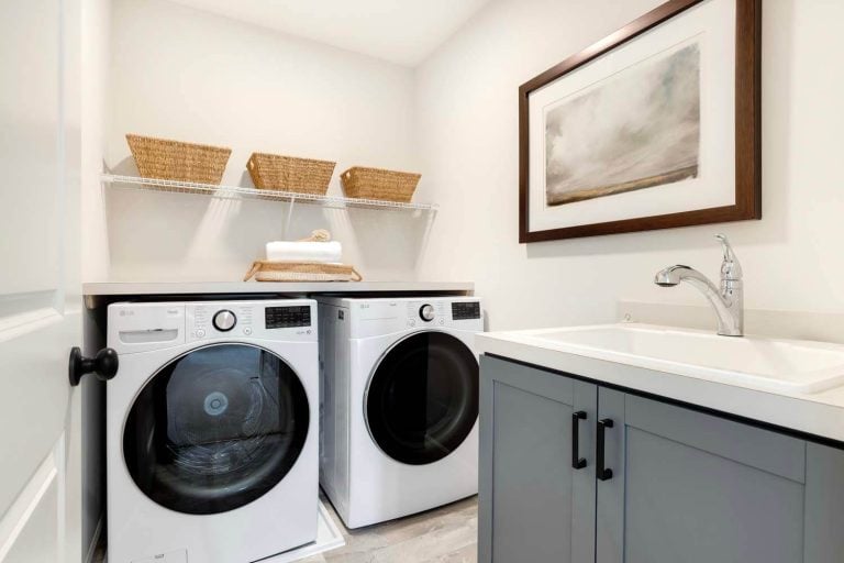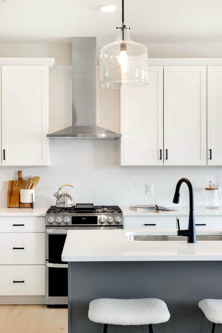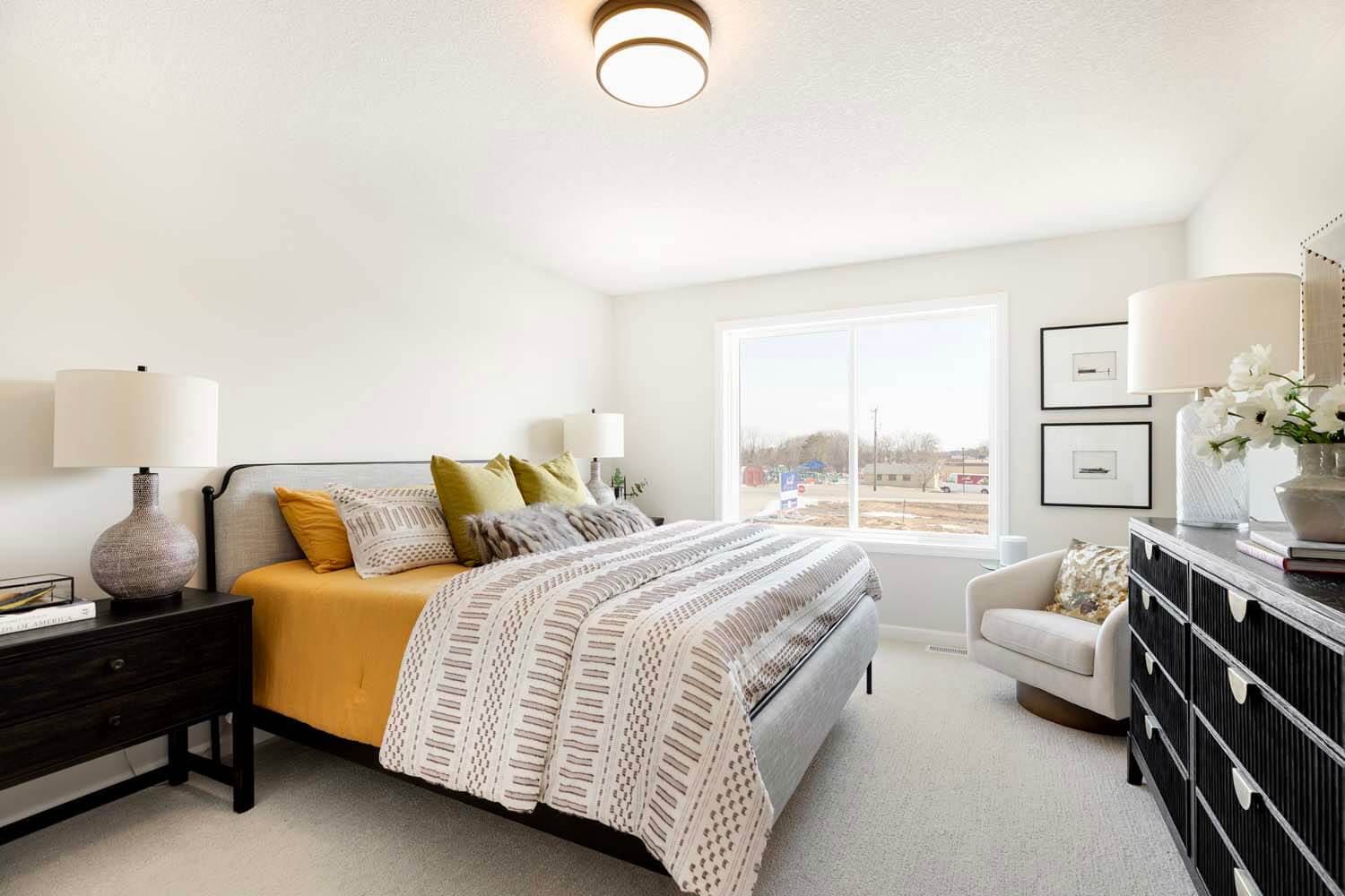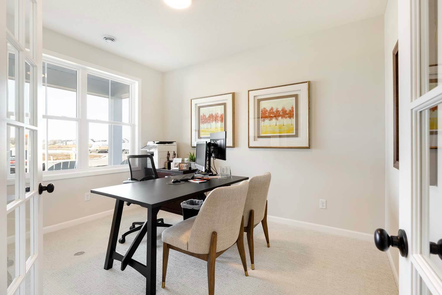 - Light-filled open-concept floorplan with main floor bedroom, flex room with doors for privacy and spacious mudroom