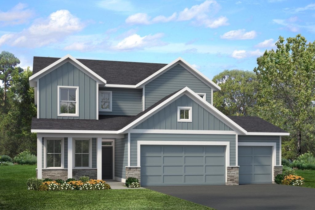 - LP SmartSide® prefinished board & lap siding with wrapped windows and trim boards on the front façade