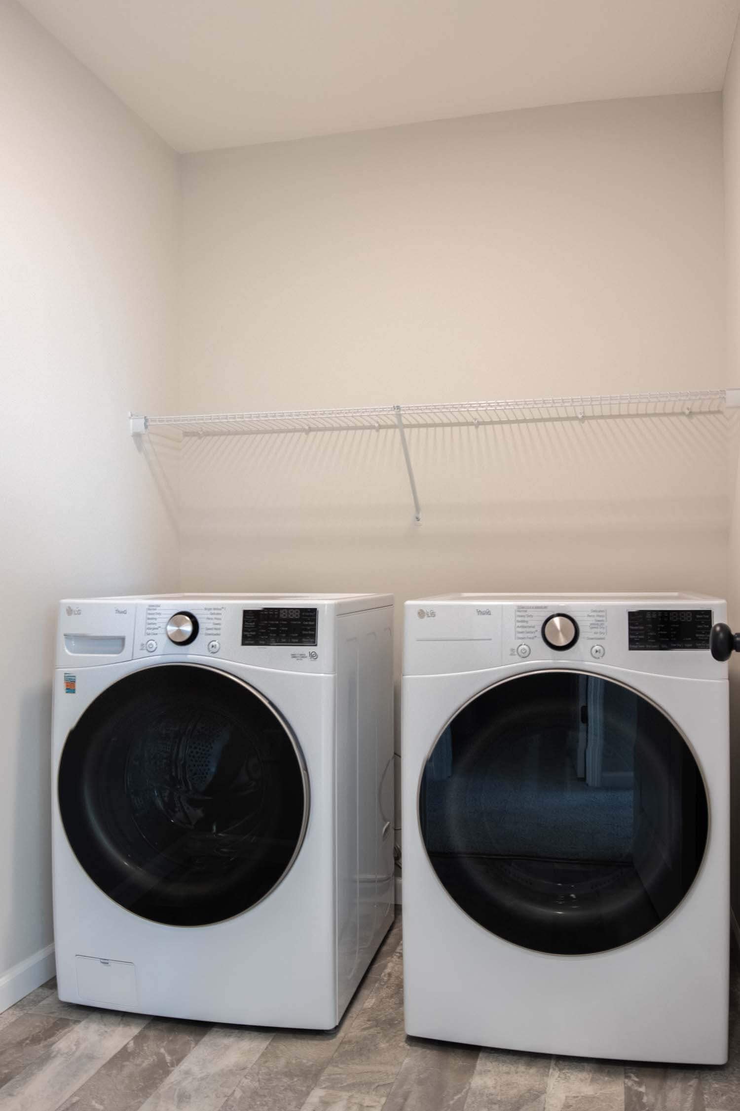 - Staircase opens to foyer and leads to upper level with 4 bedrooms, 2 bathrooms, and laundry