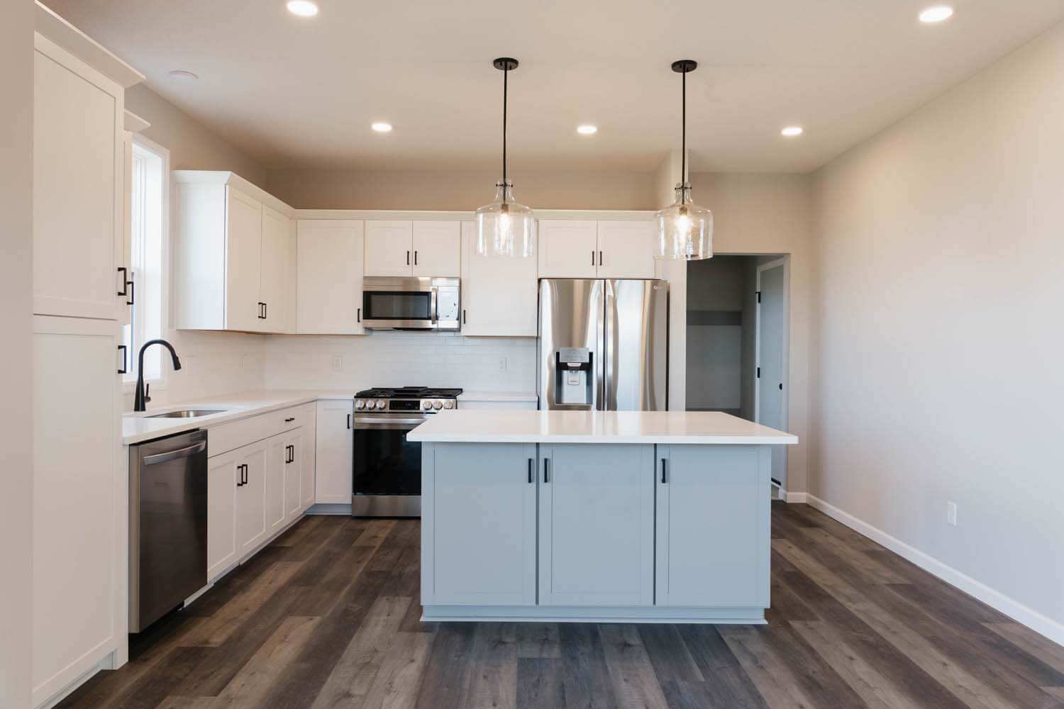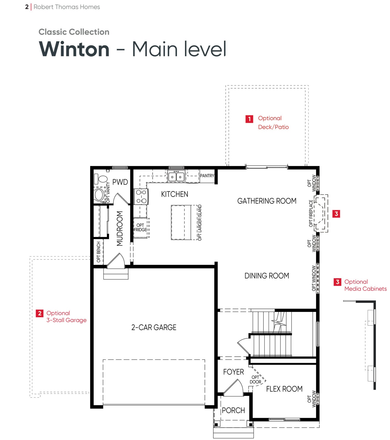 - Spacious foyer opens to main floor dining, gathering room, and kitchen