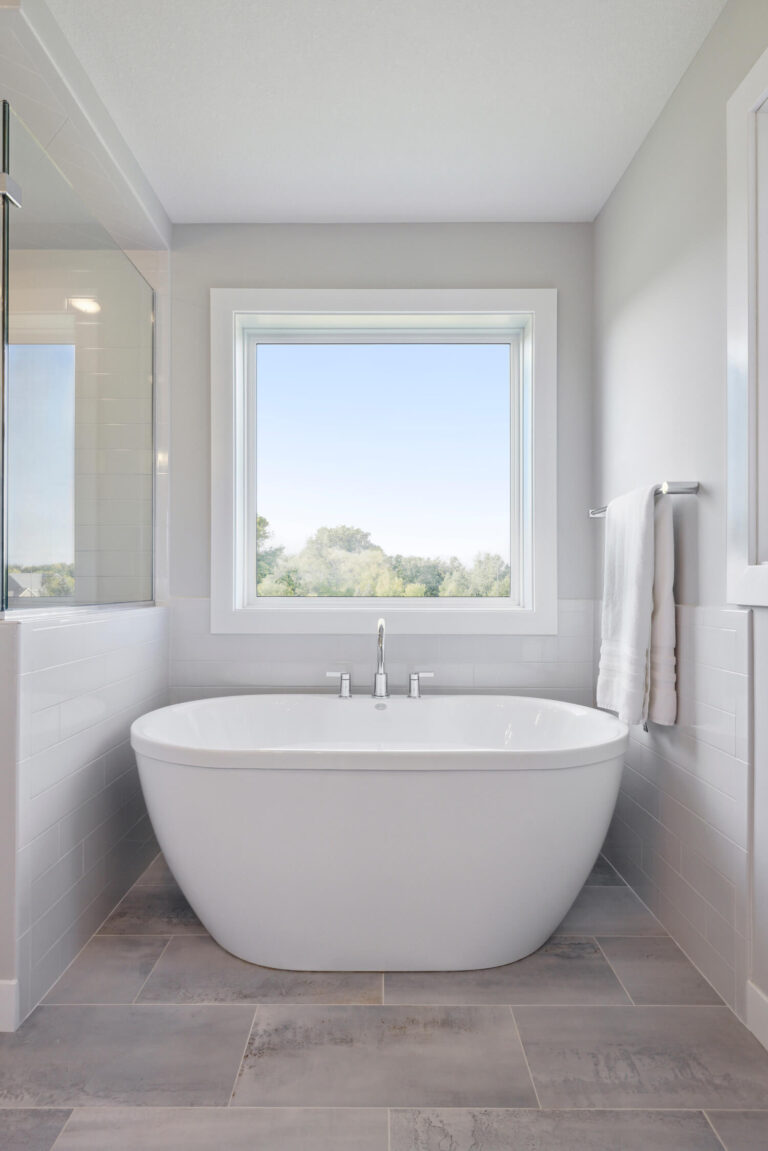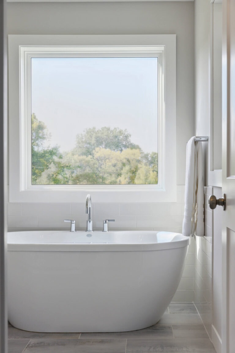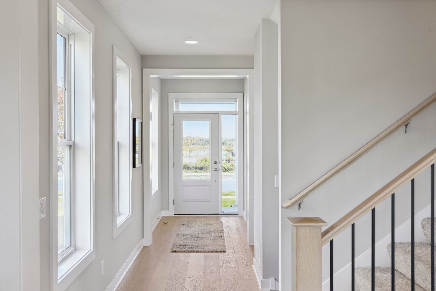 - Modern farmhouse design featuring expansive entry hall with wall of windows