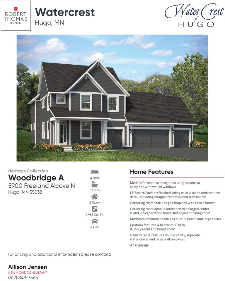 I-494 or I-694 to I-35E N; exit 117 to Hwy 96 E; north on US-61; right on 137th St. N; second right on 135th St N; continue past Fondant Trail N to Freeland Ave N; right to Watercrest of Hugo.