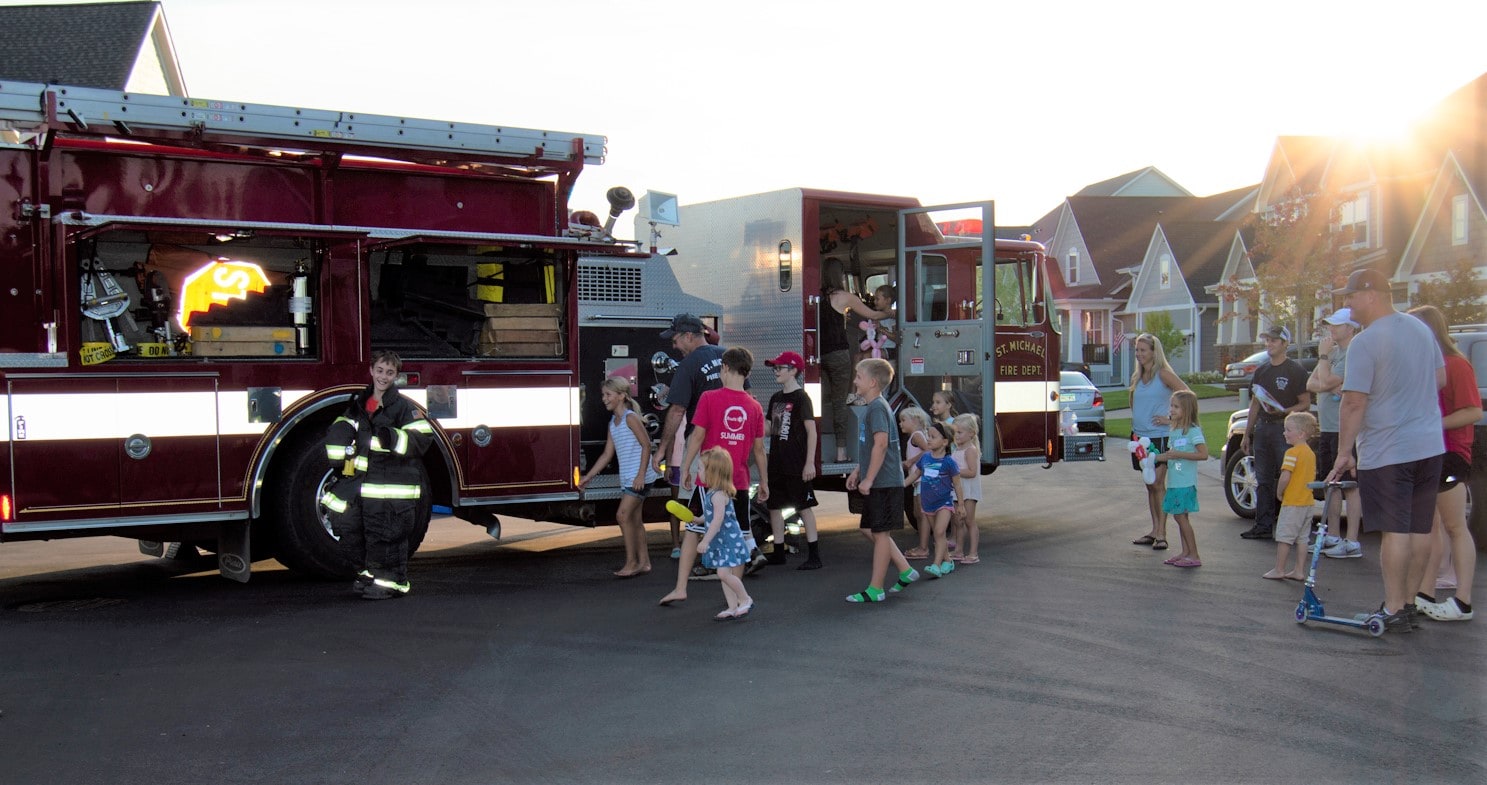 National Night Out is an annual community-building event celebrated by millions of neighbors across thousands of communities. The main goal is to promote police-community partnerships and neighborhood camaraderie. Our neighbors in the Tributary on Foster Lake community celebrated at the new Lakeside Park. The beautiful summer evening brought all of the neighbors together to get to know each other, enjoy family-friendly activities, and even get a special visit from the St. Michael Fire Department.