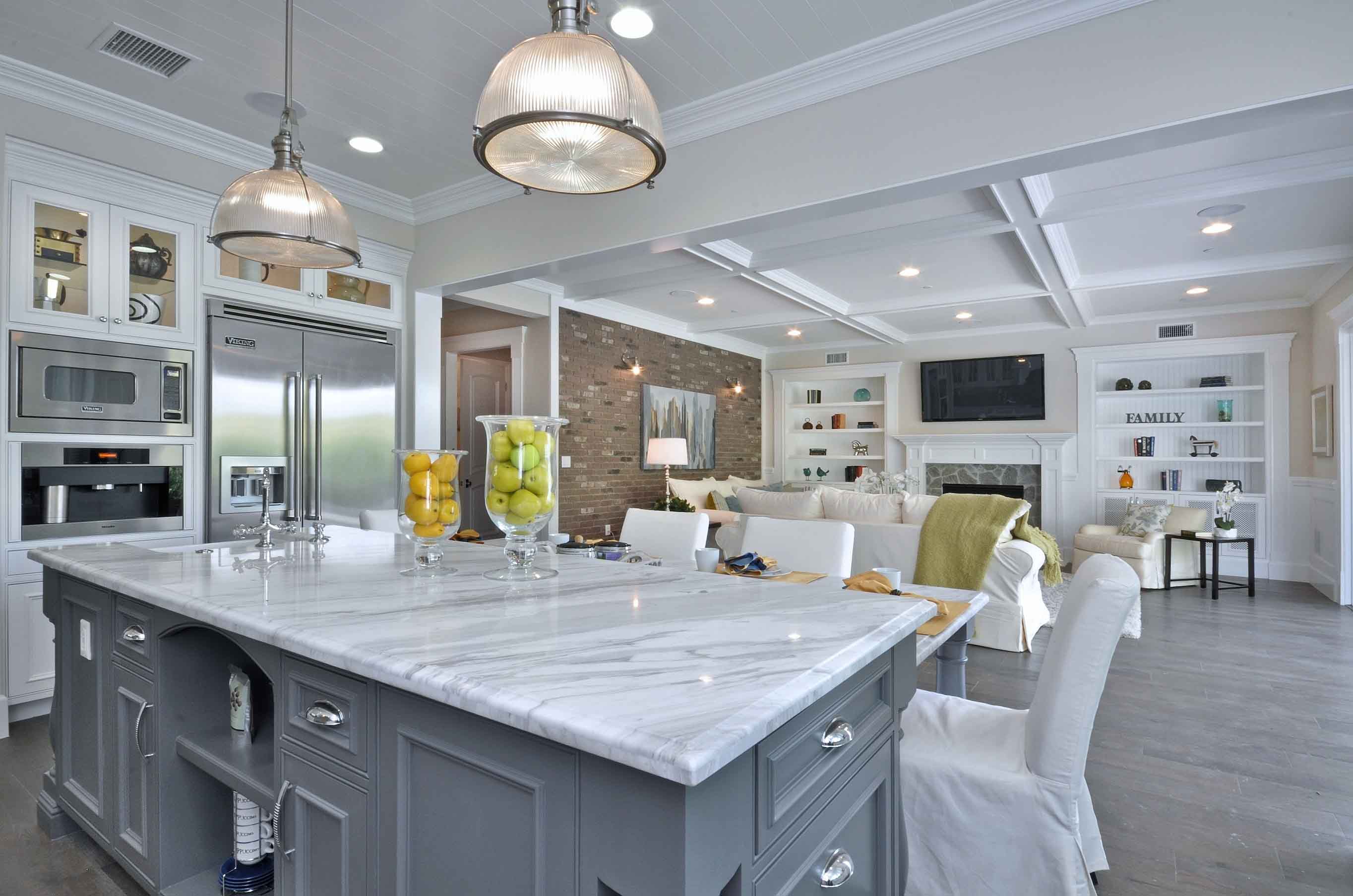 For maximum visual impact, install a showpiece island with a marble or quartz top as the focal point of your kitchen. Keep your budget in check by sticking to simpler materials for your main kitchen countertops, and allow your luxurious island to serve as the main visual attraction in this space.