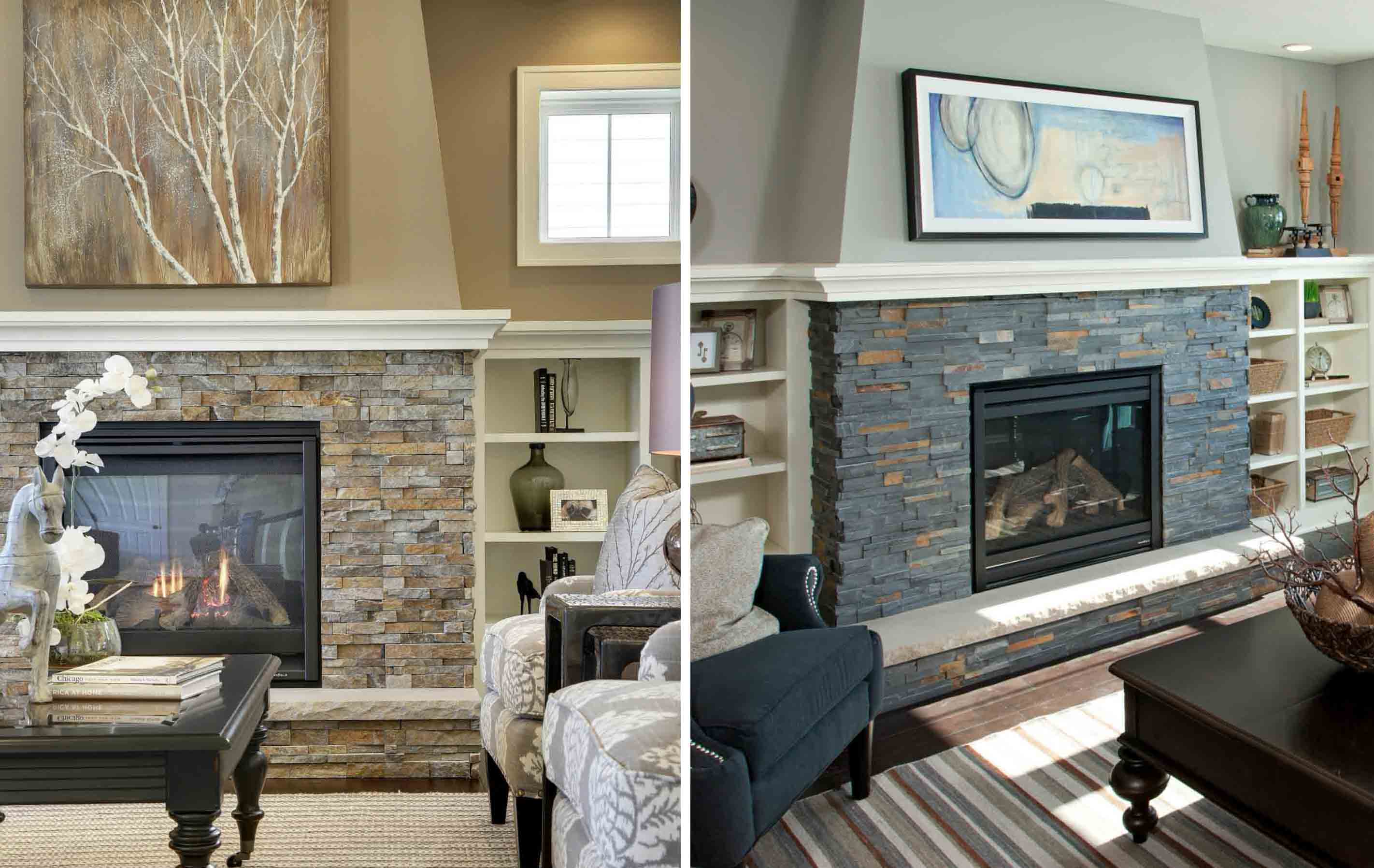 The luxurious look doesn’t need to stop in your kitchen! Consider continuing the sleek look into your gathering room by using marble for a fireplace surround like seen below from one of Robert Thomas Homes’ showcase models.