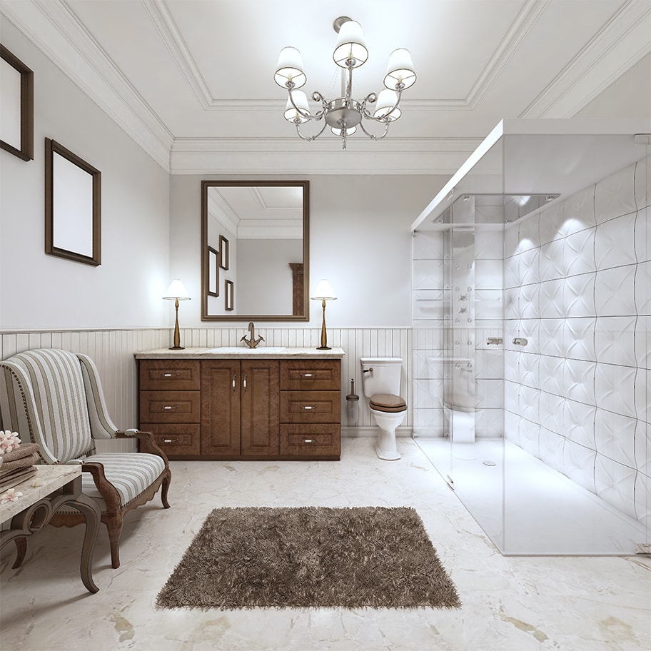 Illuminate – keep your space well-lit for a bright, airy feel or to add detail with a unique chandelier or ceiling light fixture; the trick to a chic white space is all in the details